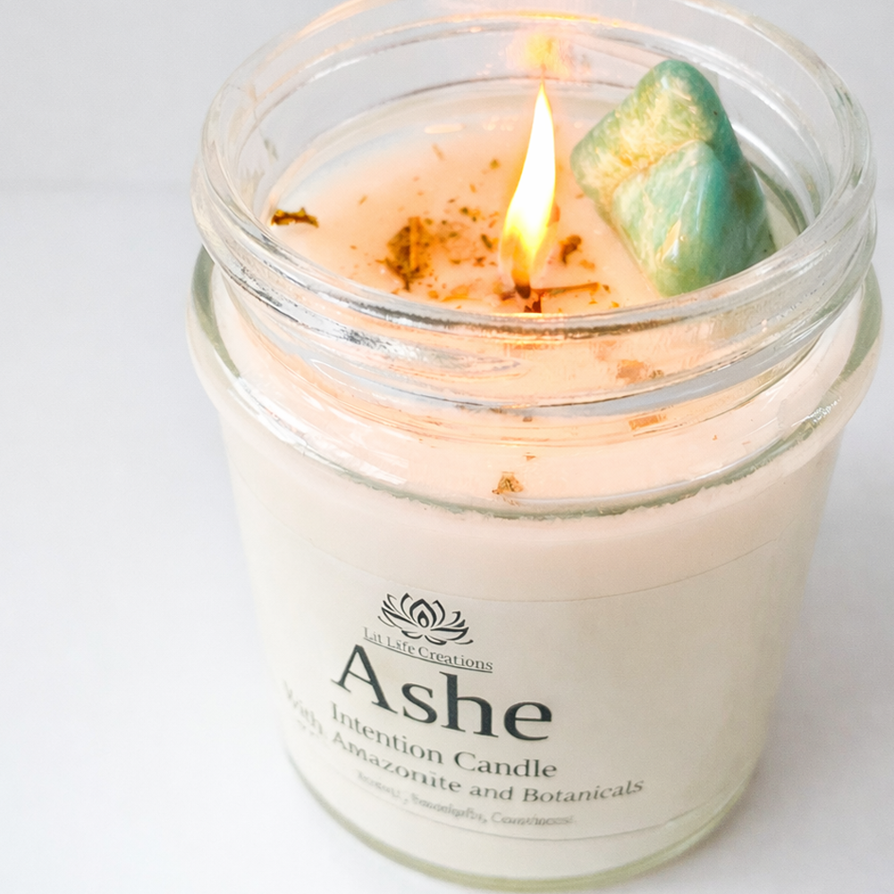 just bought this candle from this shop on chrokee in st louis as a gift for myself and a gift it is i love how intentional the candle is. the stones the herbs the little note that comes with it. it is wonderful. Thanks to the creator i know where i can get great candles now no more bath and body works for me lol.